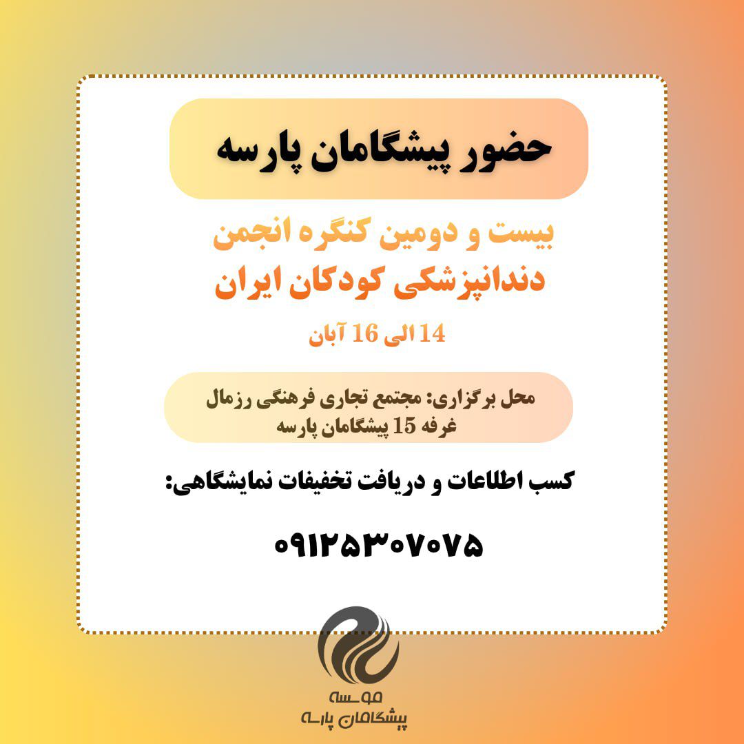 اخبار و اطلاعیه تخفیف ویژه کنگره دندانپزشکی کودکان 🔛 ثبت نام پکیج های پارسه ویژه آزمون… access_time ۱۴۰۴/۰۸/۱۴ perm_identity ارسال شده توسط بنیامین visibility 141 بازدید